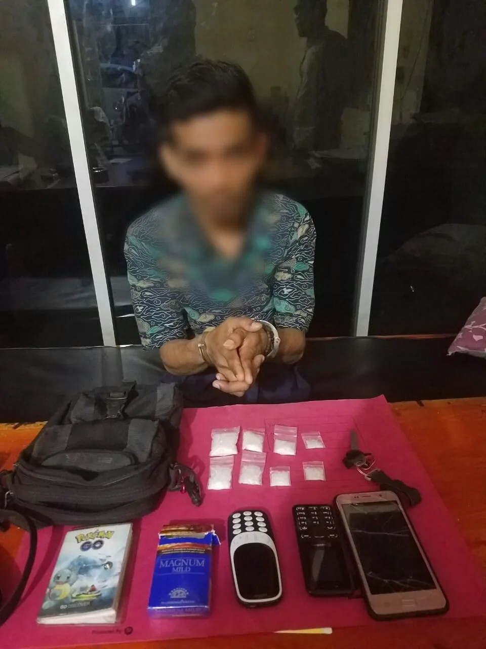Pelaku adalah AK (24) warga Pinggir Kecamatan Mandau Kabupaten Bengkalis, dari tangannya berhasil diamankan barang bukti sebuah tas sandang warna hitam berisi 8 paket sedang narkotika jenis shabu seberat 23,40 gram, selain itu ditemukan 3 unit Hp dan buku catatan transaksi serta 1 Unit Sepeda Motor Yamaha NMax warna putih.