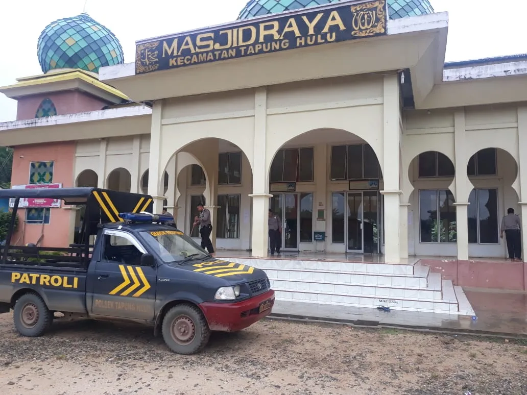 Sejumlah personel Polsek Tapung Hulu dipimpin Kanit Binmas Aiptu Jamilus, melakukan Gotong Royong membersihkan Masjid Raya Desa Sukaramai Kecamatan Tapung Hulu pada Selasa siang (18/6/2019).