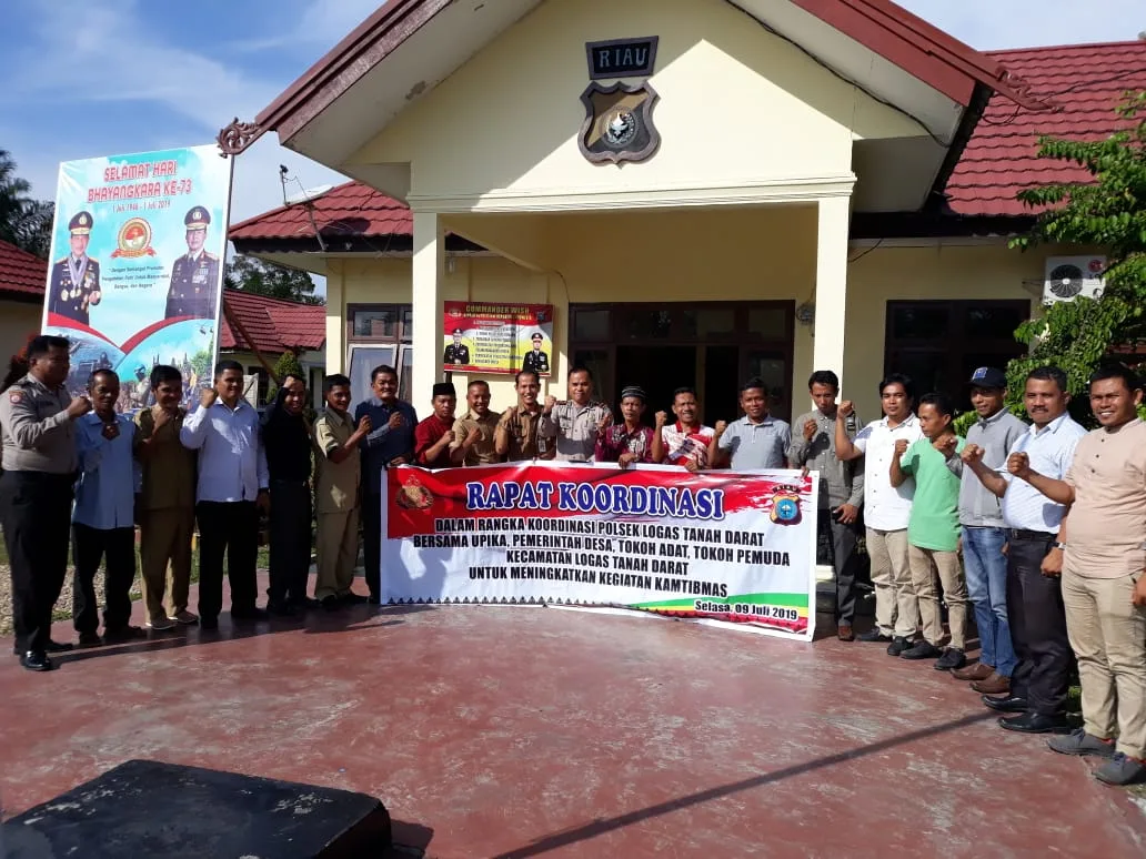 Kuansing, (cMczone.com) – Polsek Logas Tanah Darat, Polres Kuantan Singingi, Polda Riau laksanakan rapat koordinasi untuk meningkatkan Kamtibmas bersama Upika, pemerintah desa, tokoh adat, dan tokoh pemuda kecamatan Logas, Selasa (9/7/19) sekira pukul 10.00 WIB, di aula Polsek Logas Tanah Darat.