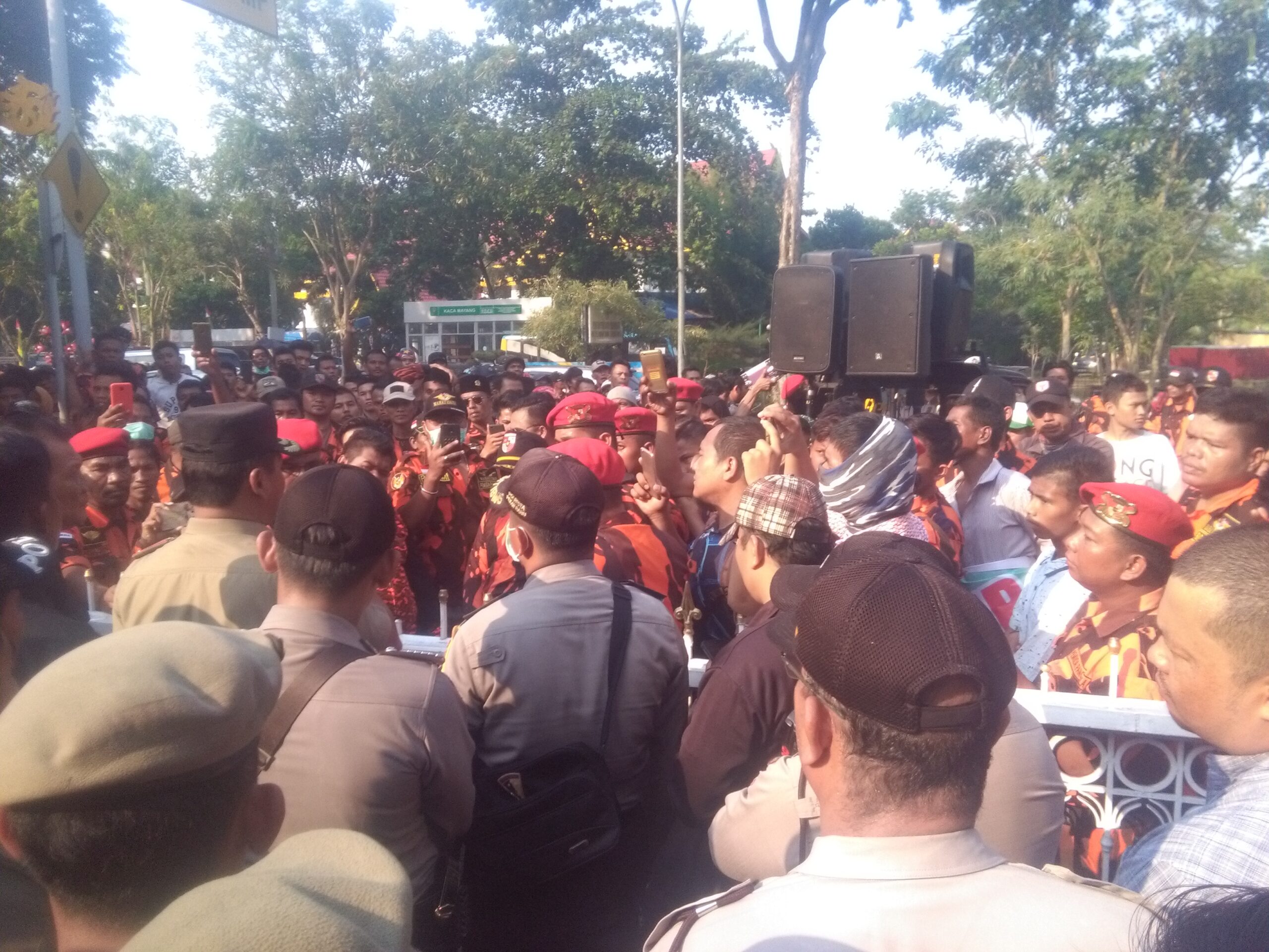 Akibat desakan measyarakat Pekanbaru akhirnya ratusan anggota Aliansi Keluarga Besar Pemuda Pancasila (PP) menggelar aksi unjukrasa di Kantor Walikota Pekanbaru Jalan Sudirman.