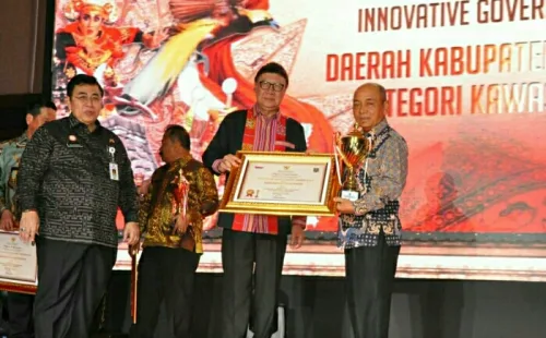 Apresiasi dan perhargaan peringkat satu Innovative Government Award (IGA) 2019 langsung diberikan Menteri Dalam Negeri (Mendagri), Tjahjo Kumolo diterima oleh Bupati Pelalawan, HM Harris di Hotel Borobudur, Jakarta, Senin (7/10/2019) malam.