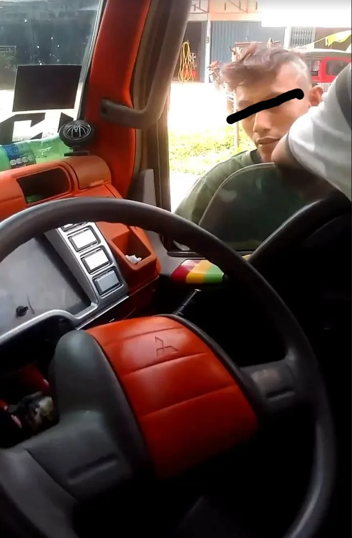 Saat mobil truk berhenti korban langsung mengatakan ” kau tau ini barang siapa, ini milik Pak Tohir orang Polda Palembang, ucap anggota Truk, dan dijawab oleh pelaku itu bapak saya,katanya. Kemudian pelaku langsung berjalan mendatangi supir truk dengan meminta uang sebesar Rp. 20.000 dengan alasan untuk membeli rokok, karena aksinya sempat direkam pelaku marah dan berkata dengan bahasa ocu ” ang video – video den la duo kali masuok masakik jiwa ado kartu kuniang manengok ang kartu kuniang, ndak temo den kantor polisi do (red- kenapa kamu rekam / video , saya ini sudah dua kali masuk rumah sakit jiwa saya ada kartu kuning gak bakalan bisa dibawa ke kantor Polisi), ucap pelaku sambil berjalan ke arah samping dan diduga menendang mobil truk tersebut.