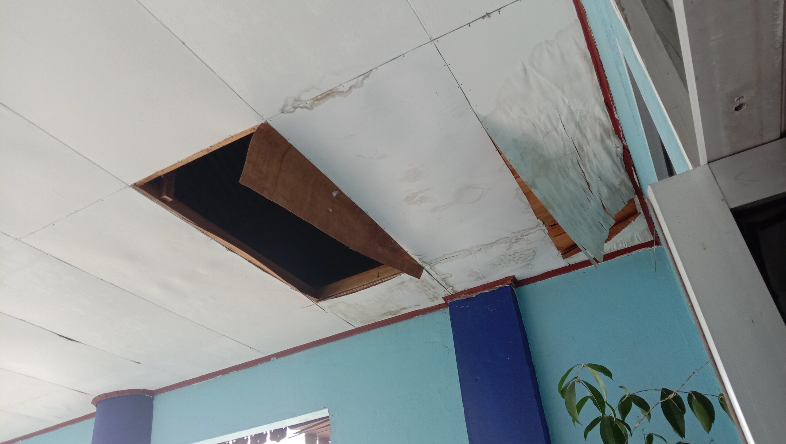 Pantauan cMczone.com, terlihat beberapa plafon yang rusak dan ada yabg berlobang hal ini diduga karena kebocoran atap gedung.