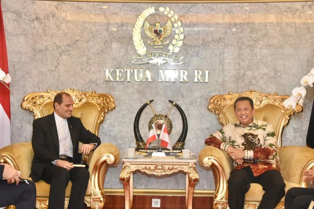 “Sebagai Anggota Tidak tetap Dewan Keamanan Perserikatan Bangsa-Bangsa 2019-2020, serta Anggota Dewan HAM Perserikatan Bangsa-Bangsa 2020-2022, Indonesia punya kepentingan menjaga dunia tetap aman dan damai. Penghormatan terhadap kedaulatan masing-masing negara merupakan kunci agar dunia tetap damai untuk ditempati. Pertikaian apalagi perang, hanya akan membuat penderitaan bagi warga dunia,” ujar Bamsoet usai menerima Duta Besar Iran untuk Indonesia, H.E. Mr. Mohammad Azad, di Ruang Kerja Ketua MPR RI, Jakarta, Selasa (21/1/20).