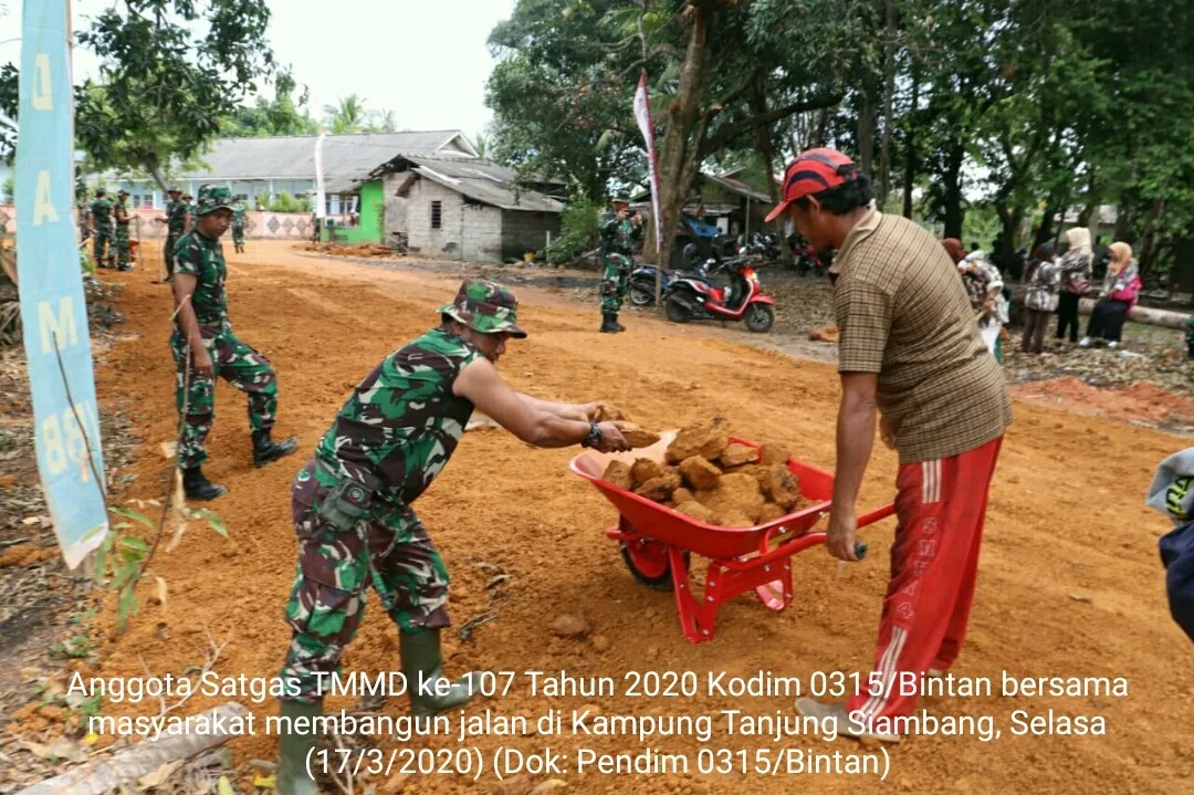 Tanjungpinang, (cMczone.com) – Kegiatan TNI Manunggal Membangun Desa (TMMD) ke-107 Tahun 2020, yang dilaksanakan oleh Komando Distrik Militer (Kodim) 0315/Bintan, telah dibuka pada Senin (16/3/2020) di Kampung Tanjung Siambang, Kelurahan Dompak, Kota Tanjungpinang, Provinsi Kepulauan Riau (Kepri).