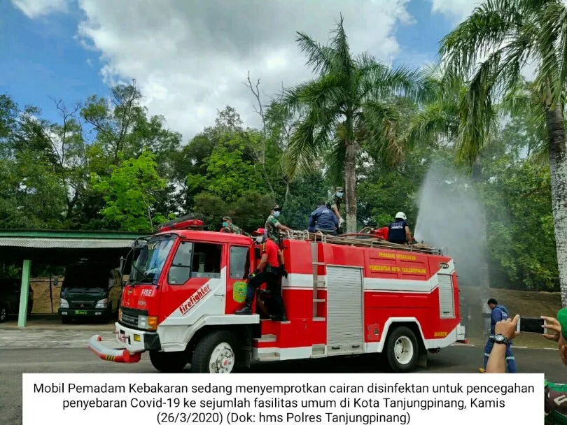 “Penggunaan mobil pemadaman kebakaran yang digunakan untuk menyemprotkan cairan disinfektan ke sejumlah fasilitas umum, itu memang sudah hasil keputusan rapat bersama stakeholder. Dan bahan-bahan cairan itu sendiri kita juga bekerjasama dengan PDAM,” ungkap Hantoni.