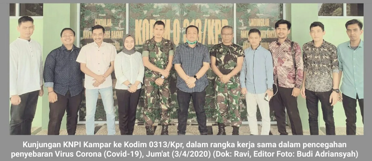 “Dalam rangka penanganan Covid-19, kami berharap agar dapat bekerja sama dengan Kodim 0313/Kpr, dalam upaya preventif pencegahan Covid-19 di Kabupaten Kampar,” ujar Ketua KNPI Kampar, Febio Anggriawan pada cMczone.com, Jum’at (3/4/2020).