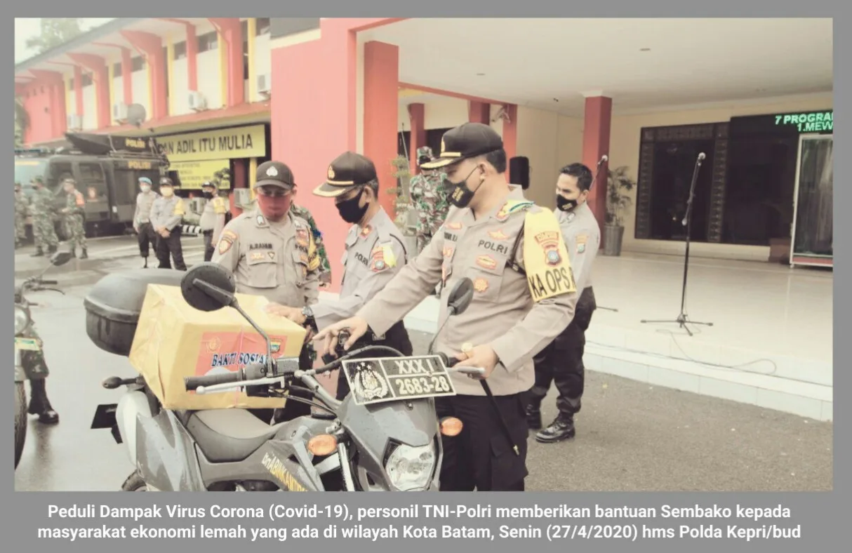 Batam, Kepri (cMczone.com) – Peduli Dampak Virus Corona (Covid-19), personil TNI-Polri memberikan bantuan Sembako kepada masyarakat ekonomi lemah yang ada di wilayah Kota Batam.