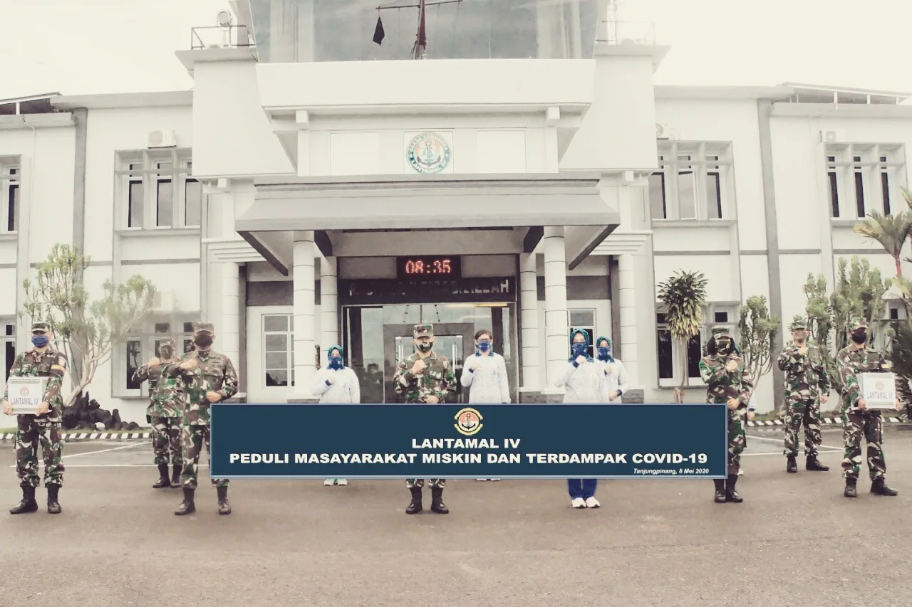 Tanjungpinang, Kepri (cMczone.com) – Komandan Pangkalan Utama TNI Angkatan Laut (Danlantamal) IV Tanjungpinang, Laksamana Pertama TNI Arsyad Abdullah, SE, MAP, didampingi Ketua Koordinator Cabang IV Daerah Jalasenastri Armada I (Ketua Korcab IV DJA I), Musyarafah Ridwan, membagikan paket Sembako kepada masyarakat miskin dan terdampak Virus Corona (Covid-19), di Desa Tanjung Lanjut, Kelurahan Kampung Bugis, Kota Tanjungpinang, Provinsi Kepulauan Riau (Kepri), Jumat (8/5/2020).