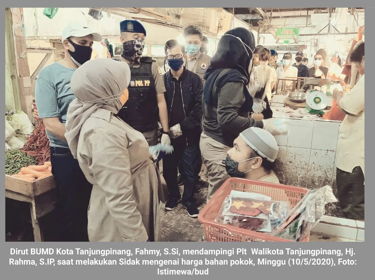 Tanjungpinang, Kepri (cMczone.com) – Pelaksana Tugas (Plt) Walikota Tanjungpinang, Hj. Rahma, S.IP, melakukan Inspeksi Mendadak (Sidak) mengenai harga bahan pokok, sekaligus memantau kepatuhan masyarakat atas penggunaan masker saat berbelanja di Pasar Baru, Jalan Pasar, Kota Tanjungpinang, Provinsi Kepulauan Riau (Kepri), Minggu (10/5/2020).