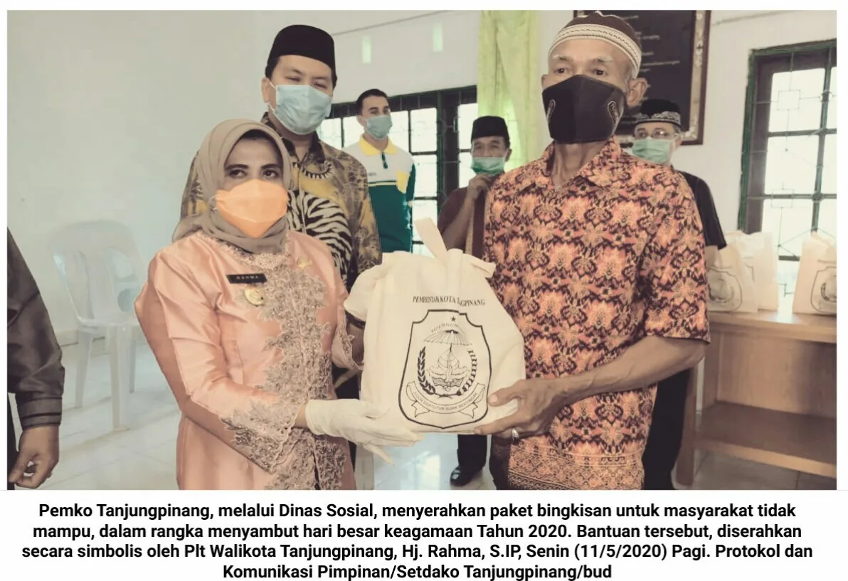 Tanjungpinang, Kepri (cMczone.com) – Pemerintah Kota (Pemko) Tanjungpinang, melalui Dinas Sosial, menyerahkan paket bingkisan untuk masyarakat tidak mampu, dalam rangka menyambut hari besar keagamaan Tahun 2020.