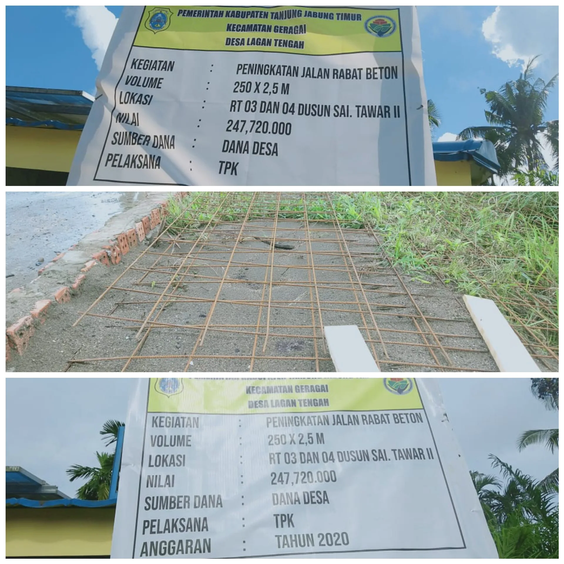 Geragai, (cMczone.com) – Usai disorot awak media belum lama ini terkait peningkatan jalan rabat beton di RT 03 dan RT 04 Dusun Sungai Tawar II Desa Lagan Tengah Kecamatan Geragai Kabupaten Tanjung Jabung Timur, Jambi, yang pada papan informasi proyek tidak menyertakan tahun anggaran Dana.