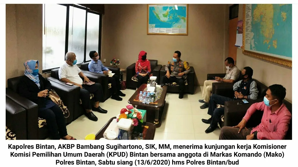 Bintan, Kepri (cMczone.com) – Kepolisian Resor (Polres) Bintan menerima kunjungan kerja Komisioner Komisi Pemilihan Umum Daerah (KPUD) Bintan bersama anggota di Markas Komando (Mako) Polres Bintan, Sabtu siang (13/6/2020).