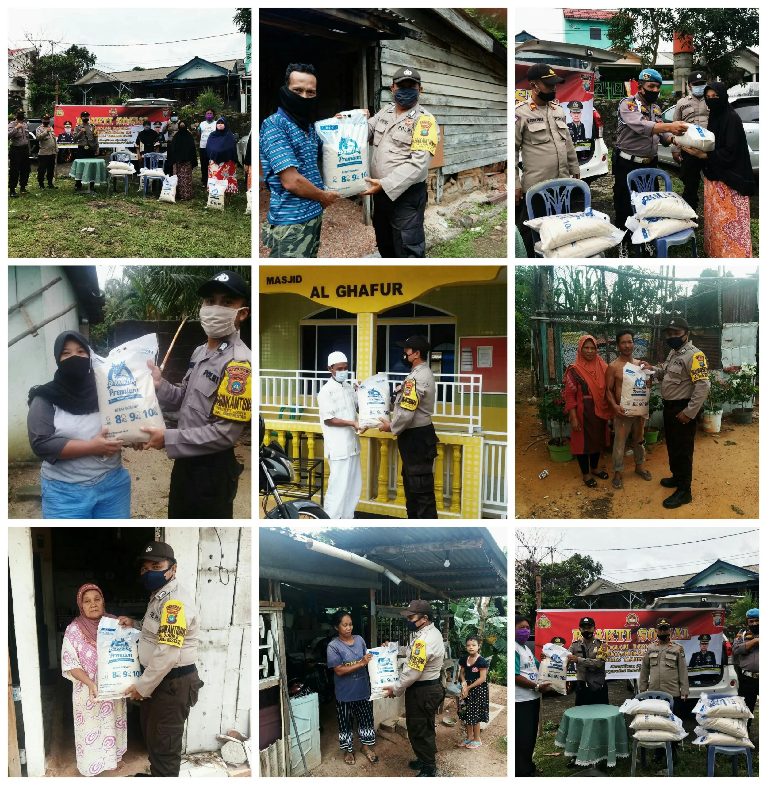 Sebanyak 400 kg beras disalurkan oleh Polsek Bukit Bestari kepada warga yang membutuhkan, yang tersebar di 5 kelurahan di Kecamatan Bukit Bestari. Dan masing-masing orang/KK memperoleh sebanyak 10 kg beras dengan total 40 paket.