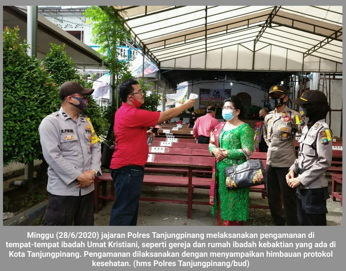 Minggu (28/6/2020) jajaran Polres Tanjungpinang melaksanakan pengamanan di tempat-tempat ibadah Umat Kristiani, seperti gereja dan rumah ibadah kebaktian yang ada di Kota Tanjungpinang.