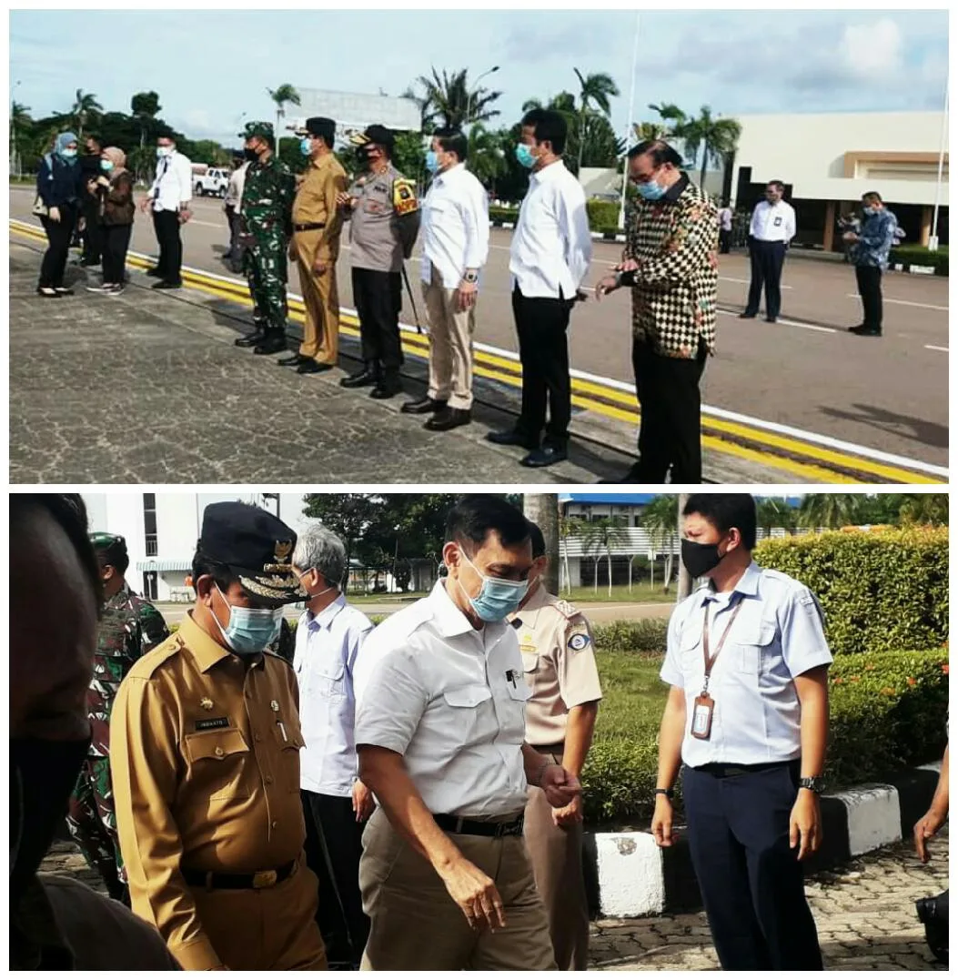 Batam, Kepri (cMczone.com) – Komandan Pangkalan Utama TNI Angkatan Laut (Danlantamal) IV Tanjungpinang, Laksamana Pertama TNI Indarto Budiarto, SE, M.Han, bersama Pelaksana Tugas (Plt) Gubernur Provinsi Kepulauan Riau (Kepri), H. Isdianto, S. Sos, MM, Pangkoarmada I (Pangkoamada) I, Laksamana Muda TNI Ahmadi Heri Purwono, SE, MM, para Komandan Satuan serta Organisasi Perangkat Daerah (OPD) terkait, sambut kedatangan Menteri Koordinator Bidang Kemaritiman dan Investasi RI, Luhut Binsar Pandjaitan (LBP), di Bandara Internasional Hang Nadim, Kota Batam, Provinsi Kepri, Kamis (2/7/2020).