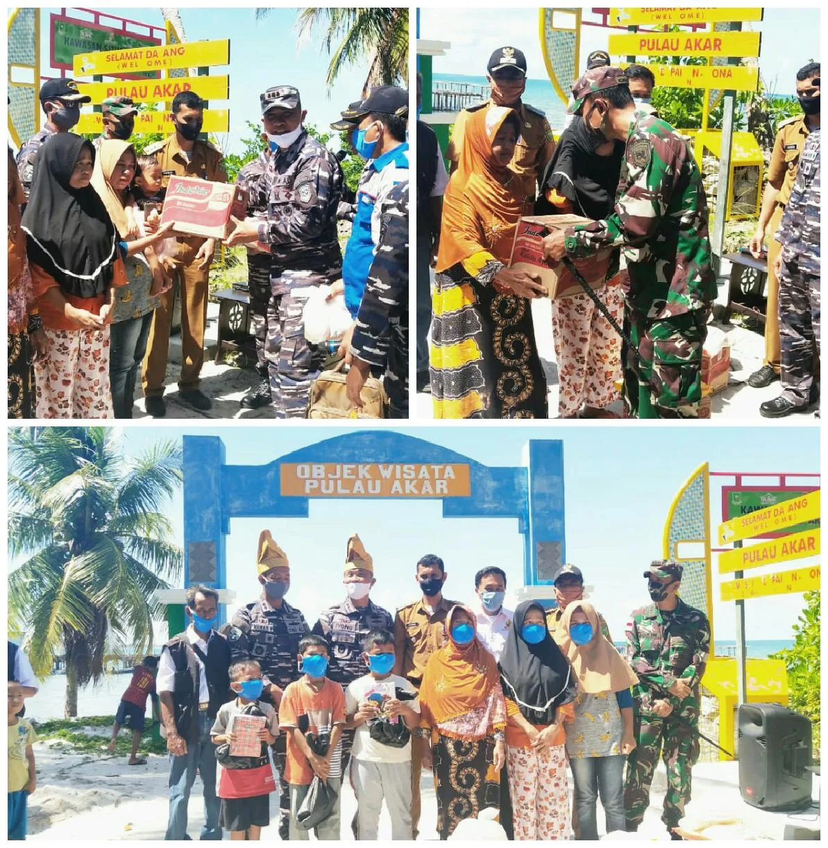 Natuna, Kepri (cMczone.com) – Bertempat di Desa Cemaga, Kecamatan Bunguran Selatan, Kabupaten Natuna, Provinsi Kepulauan Riau (Kepri), tepatnya di kawasan Objek Wisata Pulau Akar, Gugus Tempur Laut Komando Armada I (Guspurla Koarmada I) bersama Pangkalan TN Angkatan Laut (Lanal) Ranai, membagikan sejumlah paket Sembako dan buku tulis kepada masyarakat dan pelajar yang terdampak Covid-19, Senin (6/7/2020).