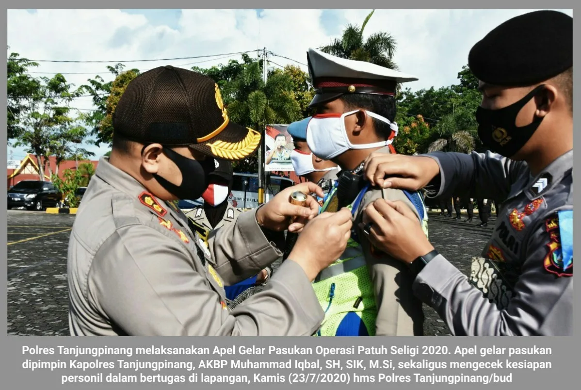 Tanjungpinang, Kepri, (cMczone.com) – Kepolisian Resor (Polres) Tanjungpinang melaksanakan Apel Gelar Pasukan Operasi Patuh Seligi 2020 di lapangan apel Polres Tanjungpinang, Kamis (23/07/2020).