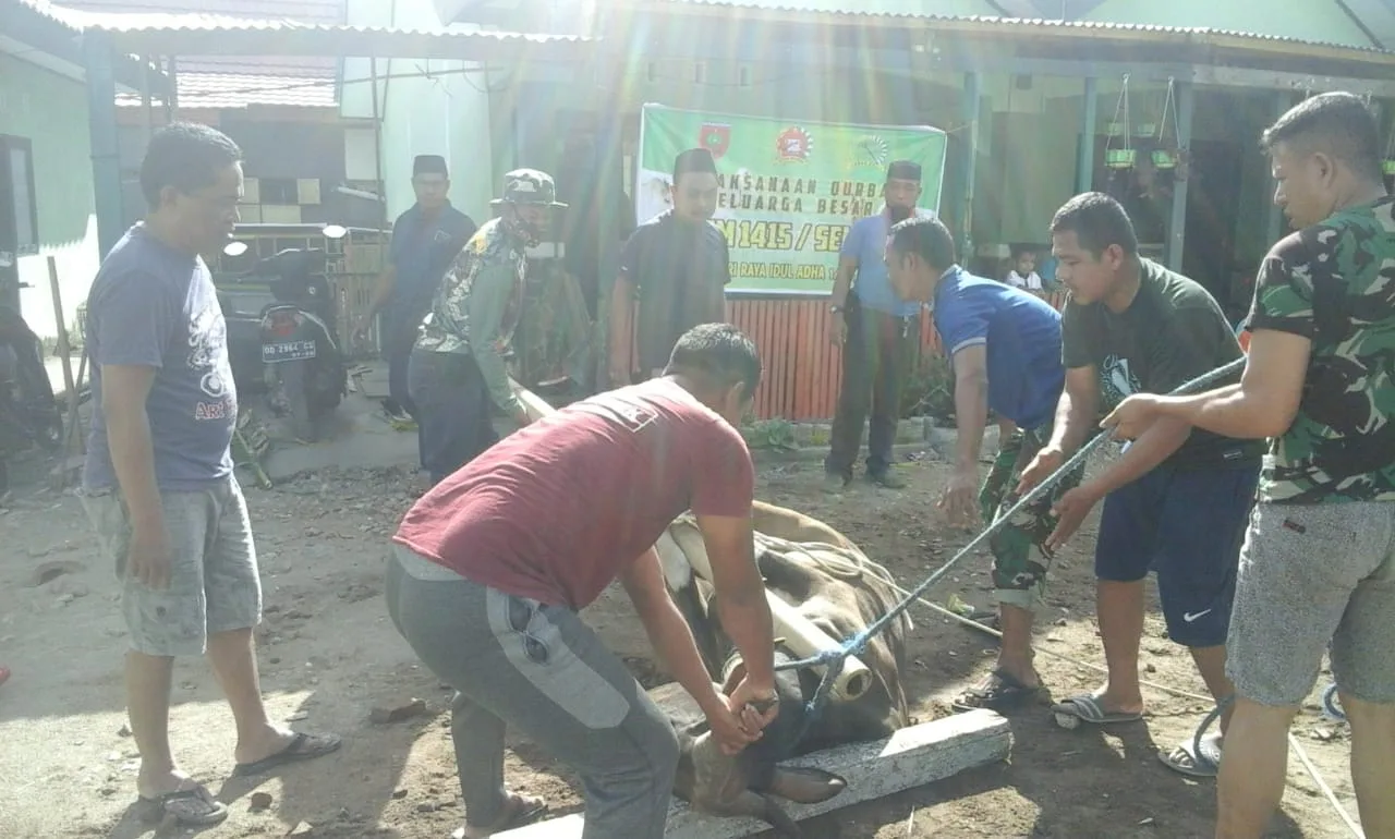 Penyembelihan hewan kurban yang terdiri atas dua ekor sapi dan dua ekor kambing, dilaksanakan secara terpusat, di lingkungan asrama Kodim 1415/Selayar, di lingkaran Jln. Veteran, Benteng, Kabupaten Kepulauan Selayar, Sulawesi-Selatan.