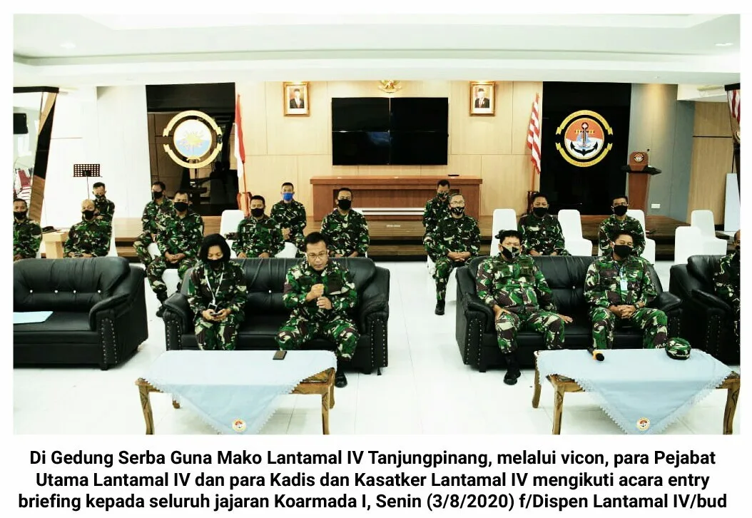 Tanjungpinang, Kepri (cMczone.com) – Panglima Komando Armada (Pangkoarmada) I, Laksamana Muda TNI A Rasyid K, SE, MM, beberapa hari setelah dilantik oleh Kepala Staf Angkatan Laut (KSAL) Laksamana TNI Yudo Margono, SE, MM, melalui video conference (vicon), melaksanakan entry briefing kepada seluruh jajaran Koarmada I, bertempat di Gedung OB Syaaf, Markas Komando (Mako) Armada I Jakarta, Senin (3/8/2020) sore.