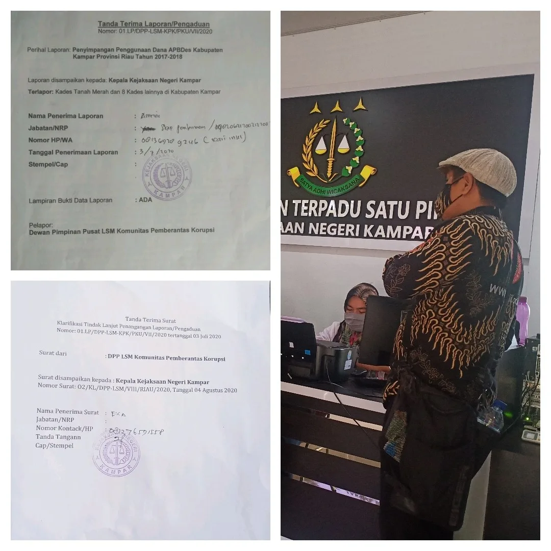 Ketua tim koordinator LSM Komunitas Pemberantas Korupsi, Demo Sumarak sekaligus Ketua Forum Pers Independent Indonesia (FPII), secara resmi menyampaikan surat klarifikasi ke Kepala Kejaksaan Negeri Bangkinang Kabupaten Kampar, Rabu (05/08/2020) untuk meminta kenjelasan proses tindak lanjut penangangan laporan/pengaduan yang diterima Kejari sebulan yang lalu dengan bukti tanda terima laporan, Nomor 01.LP/DPP-LSM-KPK/PKU/VII/2020 tanggal 03 Juli 2020