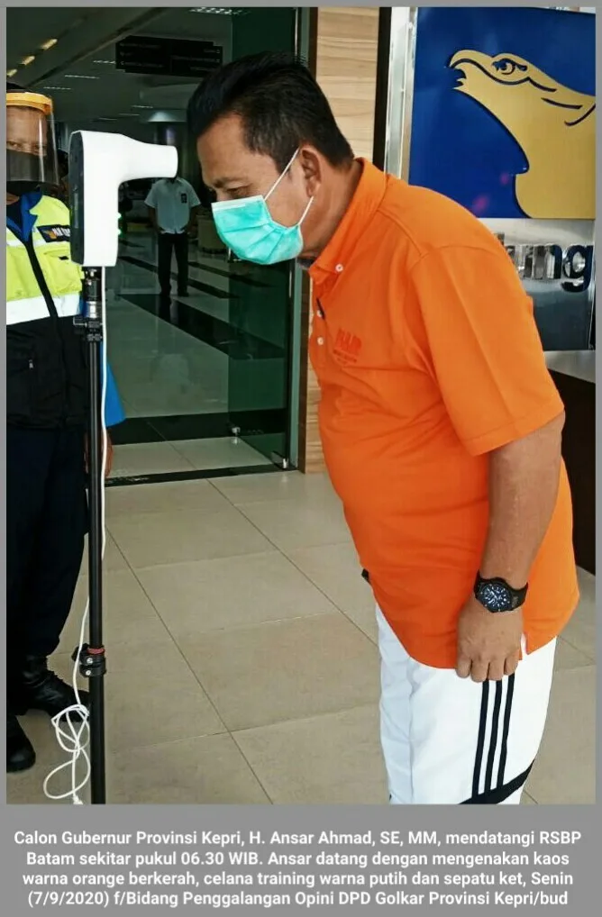 Salah satu Calon Gubernur Provinsi Kepri, H. Ansar Ahmad, SE, MM, mendatangi RSBP Batam sekitar pukul 06.30 WIB. Ansar datang dengan mengenakan kaos warna orange berkerah, celana training warna putih dan sepatu ket.