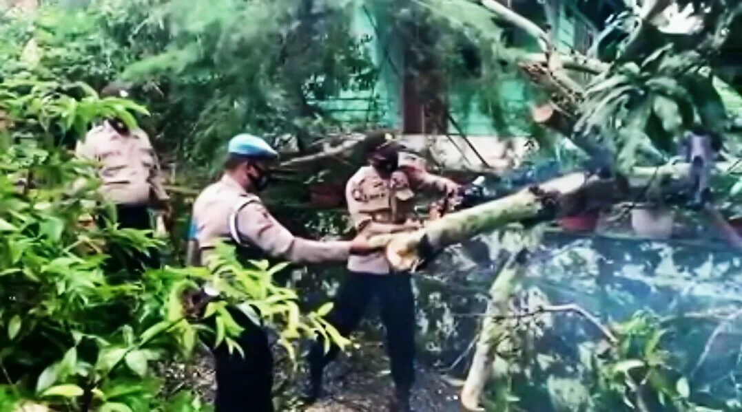 Video: Personil Polsek Tanjungpinang Barat Evakuasi Pohon Tumbang di Gang Kerkop