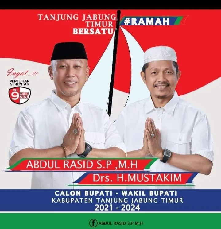Tanjabtim, cMczone.com) – Pertarungan Pemilihan kepala daerah di Tanjab Timur Berlangsung hangat, Pasalnya Head to Head antara Petahana R2 dan Penantang RAMAH mempunyai kekuatan seimbang. Pasangan Abdul Rasid dan Mustakim dinilai pasangan yang sangat berat bagi Petahana, karna dua tokoh ini memiliki Basis massa yang besar dan pendukung militan disejumlah kecamatan.