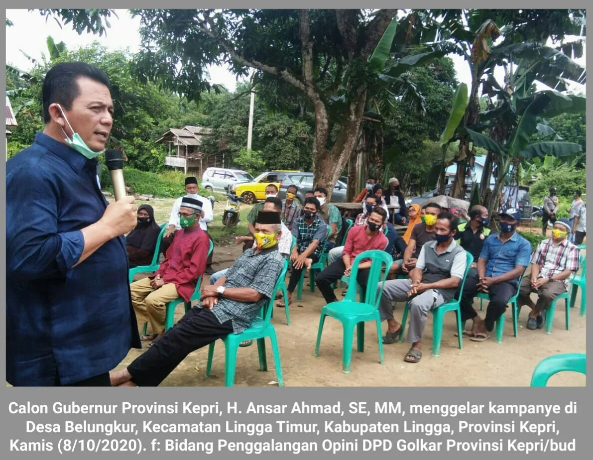 Pernyataan Ansar Ahmad tersebut disampaikan ketika menggelar kampanye di Desa Belungkur, Kecamatan Lingga Timur, Kabupaten Lingga, Provinsi Kepri, Kamis (8/10/2020).