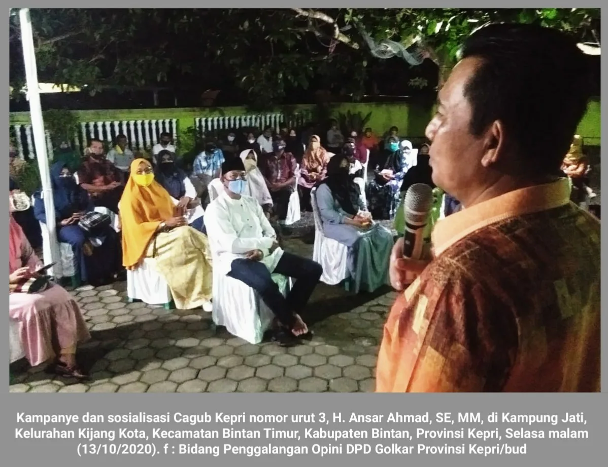 Pernyataan Popy tersebut disampaikannya ketika memberikan kata sambutan di acara kampanye dan sosialisasi Cagub Kepri, Ansar Ahmad, di Kampung Jati, Kelurahan Kijang Kota, Kecamatan Bintan Timur, Kabupaten Bintan, Provinsi Kepri, Selasa malam (13/10/2020).