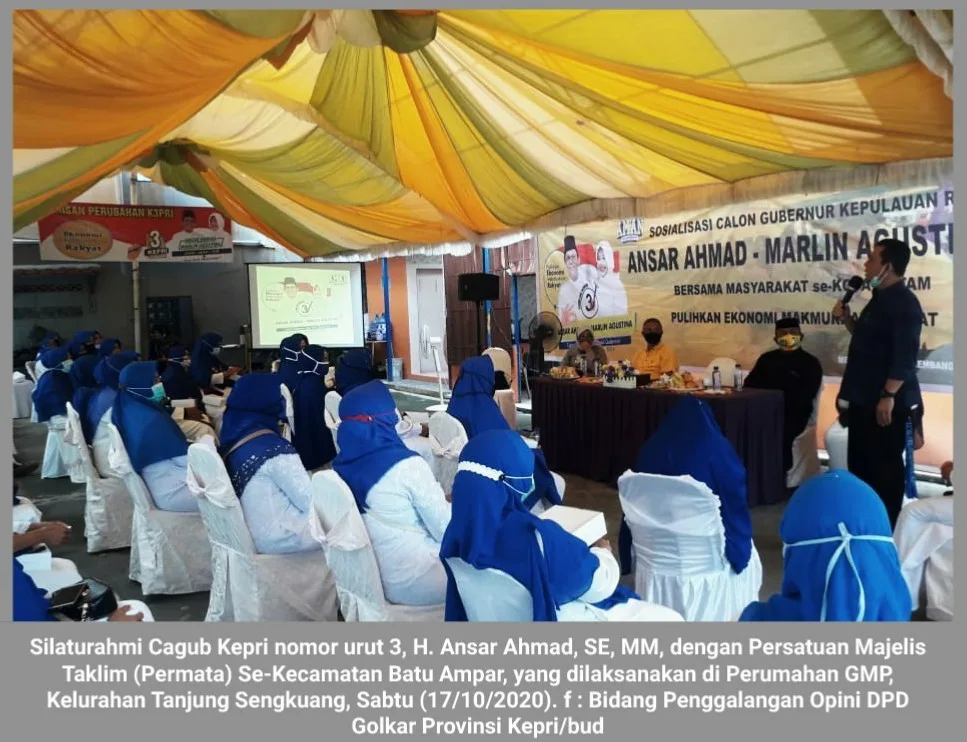 Demikian yang dikatakan oleh Sekretaris Badan Kontak Majelis Taklim (BKMT) Kota Batam, DR. Syarifah Nurmawati, kepada media di sela-sela acara silaturahmi Cagub Kepri, Ansar Ahmad, dengan Persatuan Majelis Taklim (Permata) Se-Kecamatan Batu Ampar, yang dilaksanakan di Perumahan GMP, Kelurahan Tanjung Sengkuang, Batu Ampar, Kota Batam, Provinsi Kepri, Sabtu (17/10/2020).