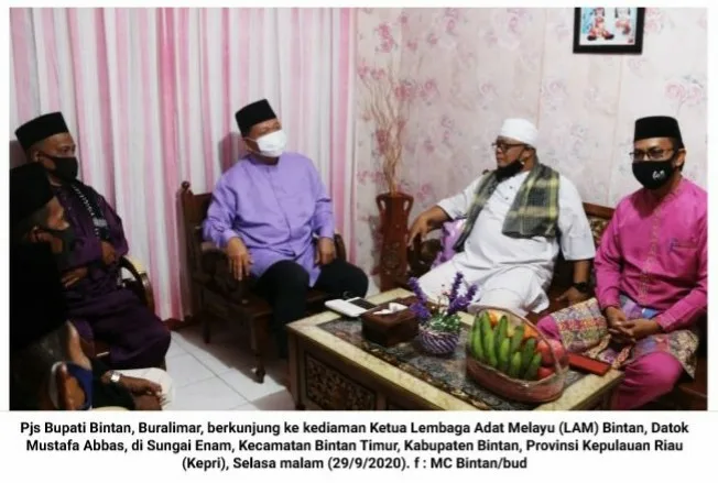 Bintan, Kepri (cMczone.com) – Pjs Bupati Bintan, Buralimar, berkunjung ke kediaman Ketua Lembaga Adat Melayu (LAM) Bintan, Datok Mustafa Abbas, Selasa malam (29/9/2020) di Sungai Enam, Kecamatan Bintan Timur, Kabupaten Bintan, Provinsi Kepulauan Riau (Kepri).