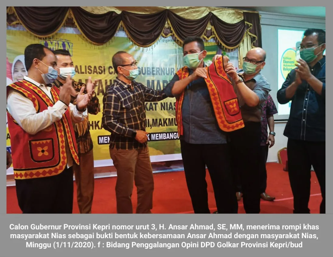 Dalam kesempatan tersebut Ansar Ahmad juga menerima rompi khas masyarakat Nias sebagai bukti bentuk kebersamaan Ansar Ahmad dengan masyarakat Nias.