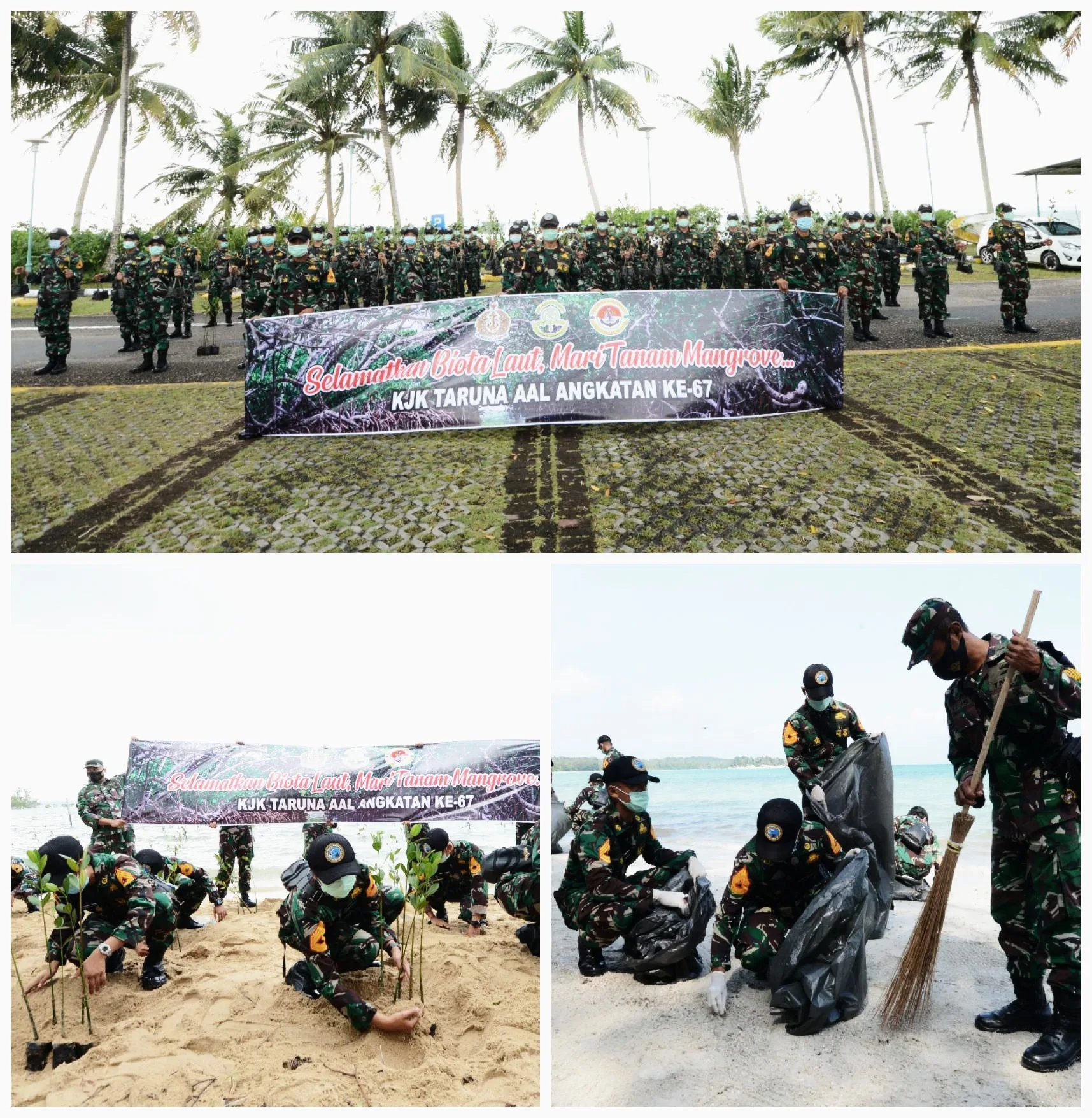 Bintan, Kepri (cMczone.com) – Dalam rangka menjaga kebersihan pantai dan menjaga ekosistem biota laut serta mencegah terjadinya abrasi oleh air laut, Segenap Taruna dan Taruni Akademi Angkatan laut (AAL) Angkatan LXVII peserta Latihan Praktek Pelayaran Muhibah Kartika Jala Krida Tahun 2020, menggelar aksi bersih-bersih pantai di Lagoi Bay dan tanam mangrove di Bandar Bintan Telani (BBT) dimana kedua lokasi tersebut berada di Kawasan Wisata Lagoi Bintan Utara, Kabupaten Bintan, Provinsi Kepulauan Riau (Kepri) , Minggu pagi (1/11/2020).