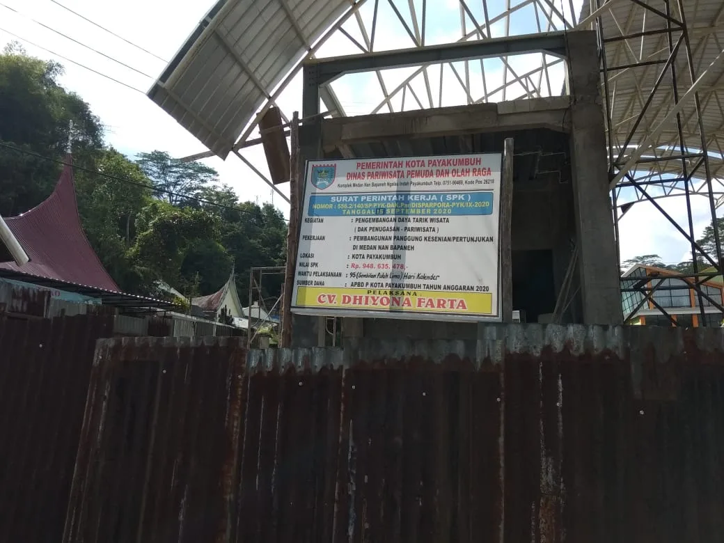 Kabid Destinasi DISPARPORA Kota Payakumbuh Syawal Takri S.Sos membenarkan adanya pembangunan panggung seni ini.Namun Kabid Tidak mengetahui akan adanya pelanggaran UU tenaga kerjaan dalam pembangunannya.