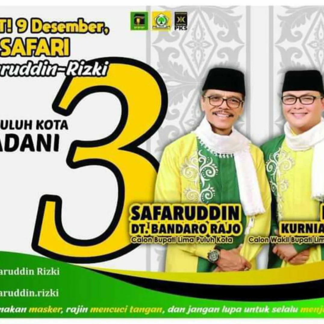 Limapuluh kota,(cmczone.com)-Setelah KPU 50 Kota menyelesaikan Pleno terbuka beberapa waktu lalu dan mengumumkan ke publik bahwa peraih suara terbanyak pada Pilkada 50 kota 2020 adalah Paslon No.urut 03 ( Safaruddin – Rizky ) yang di usung oleh Partai Golkar , PPP dan PKS dengan total 12 kursi di DPRD Kabupaten 50 Kota Provinsi Sumbar.