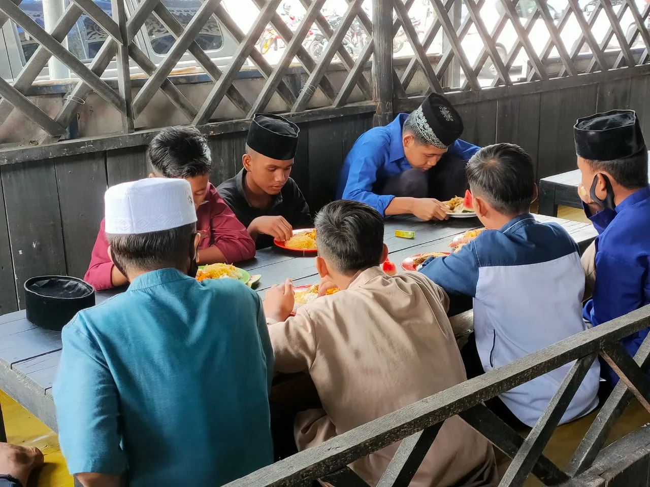Para peserta Jumat Barokah Satreskrim Polres Kampar ini tampak senang menikmati makan siang yang disediakan secara prasmanan ini, sekitar 200 porsi makan siang yang telah disiapkan habis dinikmati pesertanya.