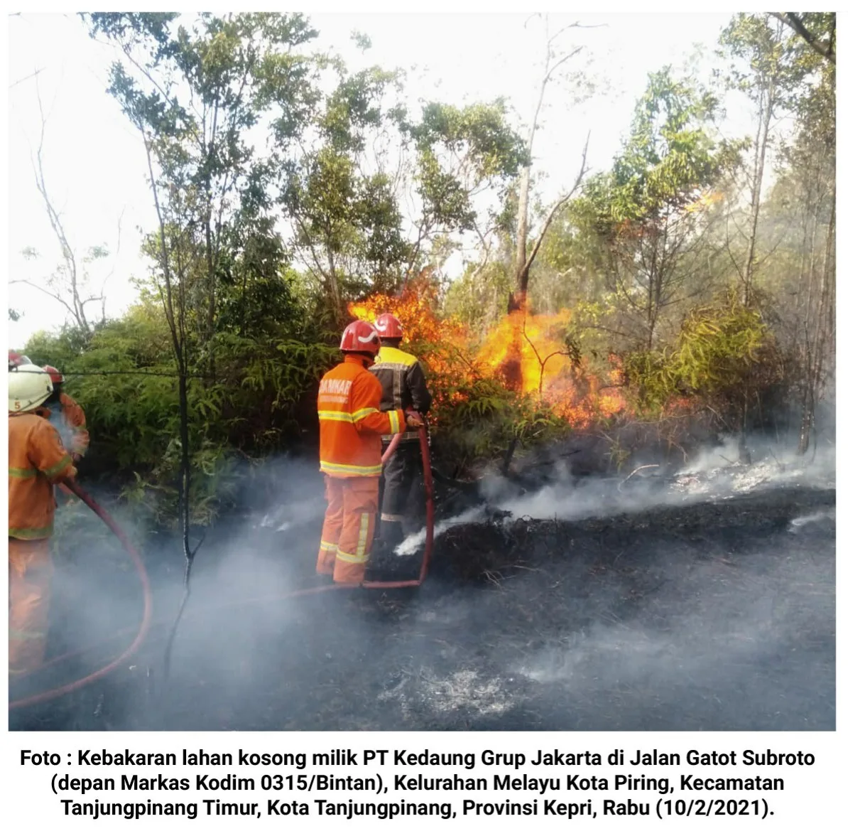 Tanjungpinang, Kepri (cMczone.com) – Seluas 1,5 hektar lahan kosong milik PT Kedaung Grup Jakarta hangus terbakar, Rabu (10/2/2021) sekitar pukul 14.48 WIB.