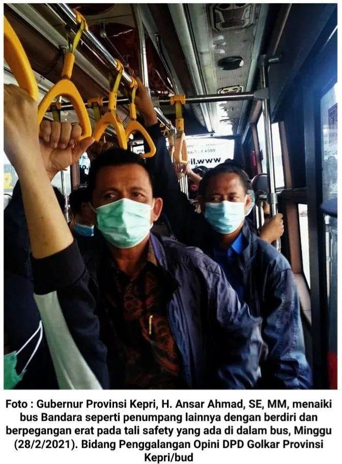 Ansar Ahmad duduk di kursi kelas ekonomi dan berbaur dengan penumpang lainnya. Perjalanan dari Tanjungpinang ke Jakarta, Ansar Ahmad hanya ditemani dua orang untuk keperluan tugasnya sebagai Gubernur Kepri.