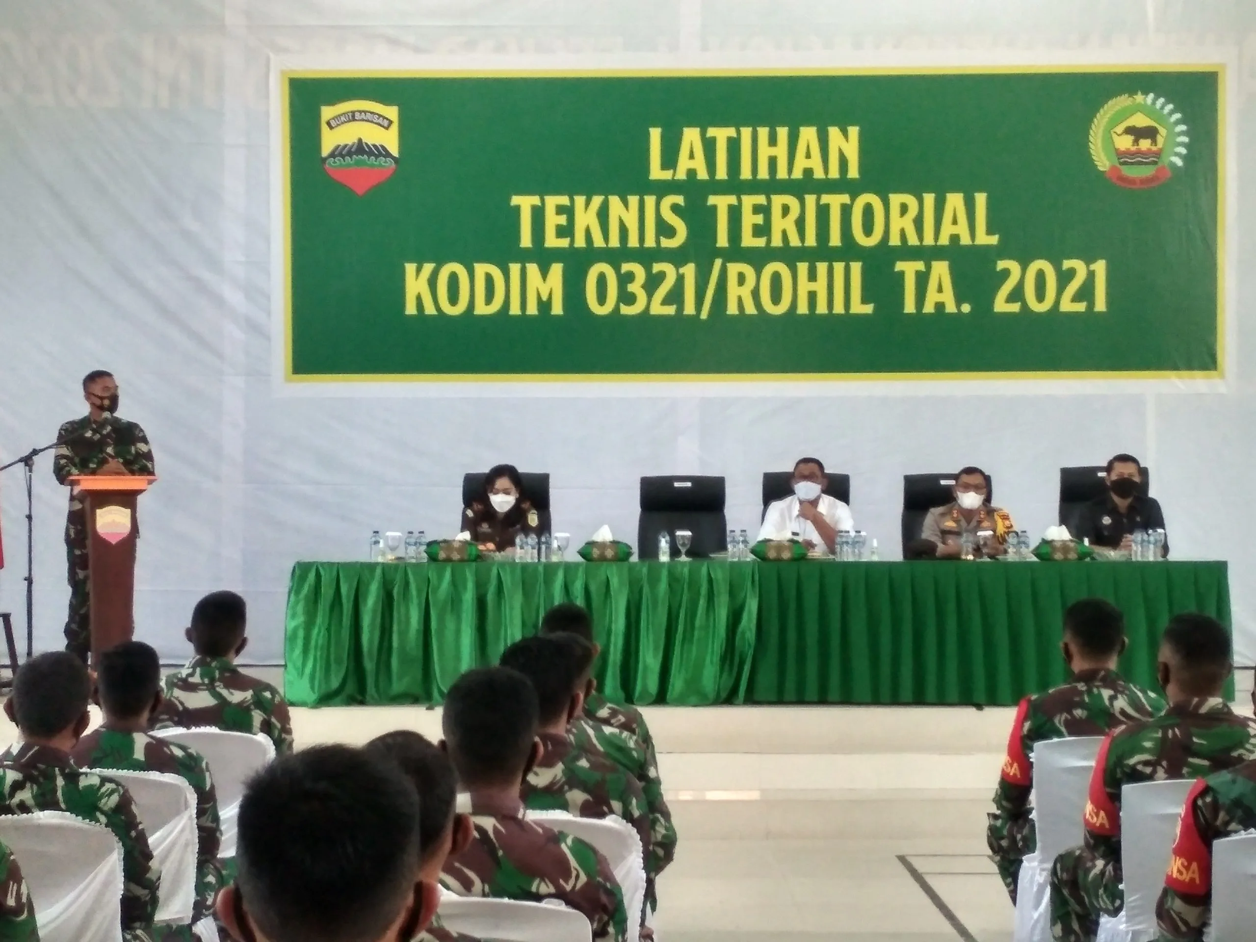 Dandim 0321/Rohil Letkol Arh Agung Rakhman Wahyudi SIP.M.I.Pol dalam arahan nya mengatakan, latihan teknis teritorial ditujukan kepada peningkatan kemampuan pada Babinsa khususnya di kodim 0321/Rohil.
