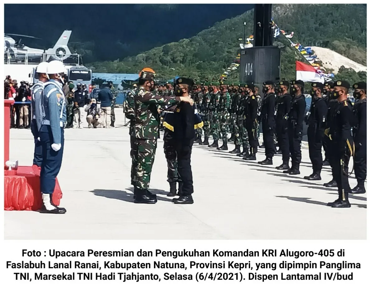 Upacara tersebut dipimpin langsung oleh Panglima TNI, Marsekal TNI Hadi Tjahjanto, sekaligus pengambilan sumpah jabatan Komandan KRI Alugoro-405.