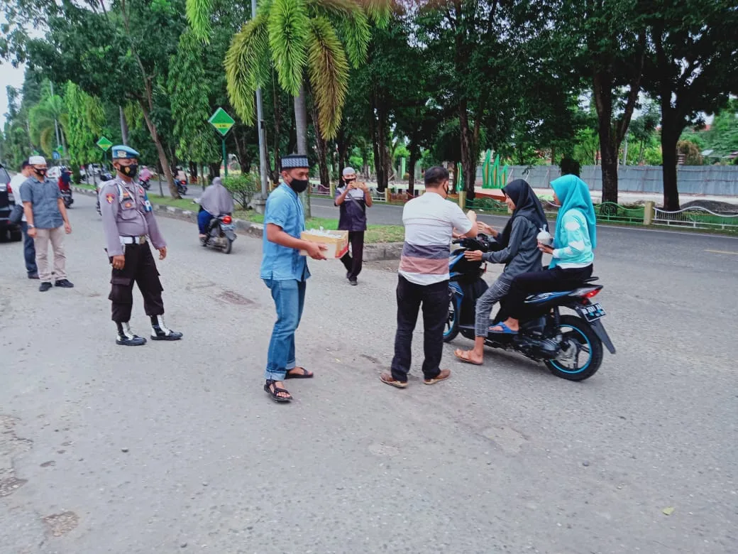 Kegiatan tersebut selain memberikan takjil, juga memberikan himbauan serta membagikan Masker Gratis Kepada Pengendara yang melintas, kegiatan tersebut dilaksanakan di depan Mapolres Merangin.