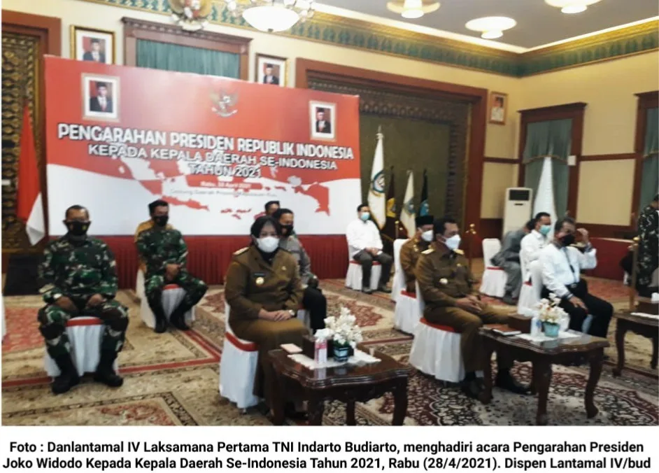 Tanjungpinang, Kepri (cMczone.com) – Komandan Pangkalan Utama TNI Angkatan Laut IV (Danlantamal IV) Laksamana Pertama TNI Indarto Budiarto, menghadiri acara Pengarahan Presiden Joko Widodo Kepada Kepala Daerah Se-Indonesia Tahun 2021, melalui video conference (vicon).