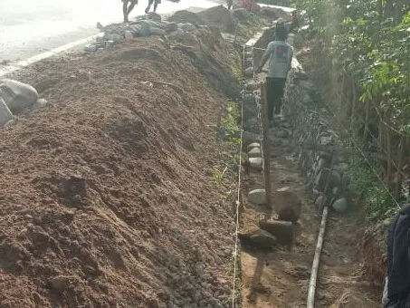 Pantauan awak media di lapangan sekitar Nagari Koto Taratak, Kecamatan Sutera. Miris, tanpa memperhatikan adanya sambungan pipa saluran air Pamsimas, pekerja memasang konstruksi drainase di atas pipa pamsimas.