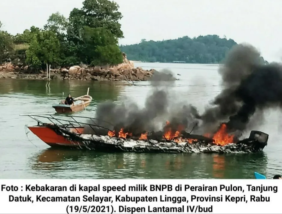 Lingga (Kepri), cMczone.com – Pos TNI Angkatan Laut (Posal) Penuba, Pangkalan TNI Angkatan Laut (Lanal) Dabo Singkep, bersama Polairud Polres Lingga dan Basarnas Kabupaten Lingga, berhasil membantu evakuasi korban kebakaran di kapal speed milik Badan Nasional Penanggulangan Bencana (BNPB) di Perairan Pulon, Tanjung Datuk, pada koordinat 00°13.626 S-104°22.515 E, Kecamatan Selayar, Kabupaten Lingga, Provinsi Kepulauan Riau (Kepri), Rabu (19/5/2021).