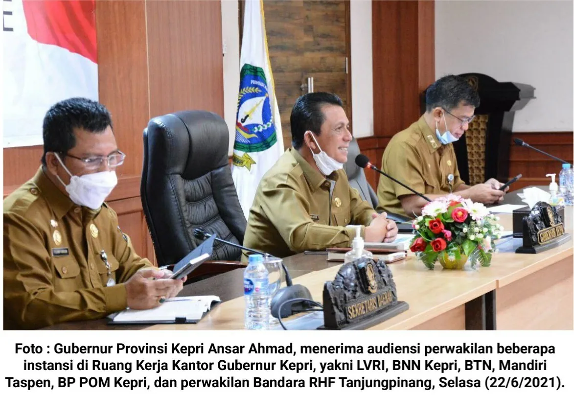 Tanjungpinang (Kepri), cMczone.com – Sepanjang hari Selasa (22/6/2021), di tengah aktivitas mengkoordinasikan target vaksinasi di Provinsi Kepulauan Riau (Kepri), Gubernur Provinsi Kepri Ansar Ahmad, menerima audiensi perwakilan beberapa instansi di Ruang Kerja Kantor Gubernur Kepri, Dompak, Kota Tanjungpinang.