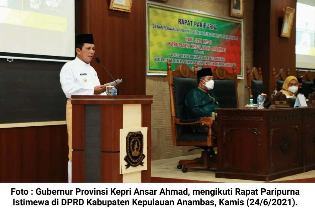 “Selamat Hari Jadi ke-13 Kabupaten Anambas. Semoga Kabupaten Anambas makin maju dan sejahtera,” ucap Ansar pada Rapat Paripurna Istimewa di DPRD Kabupaten Kepulauan Anambas, Kamis (24/6/2021).