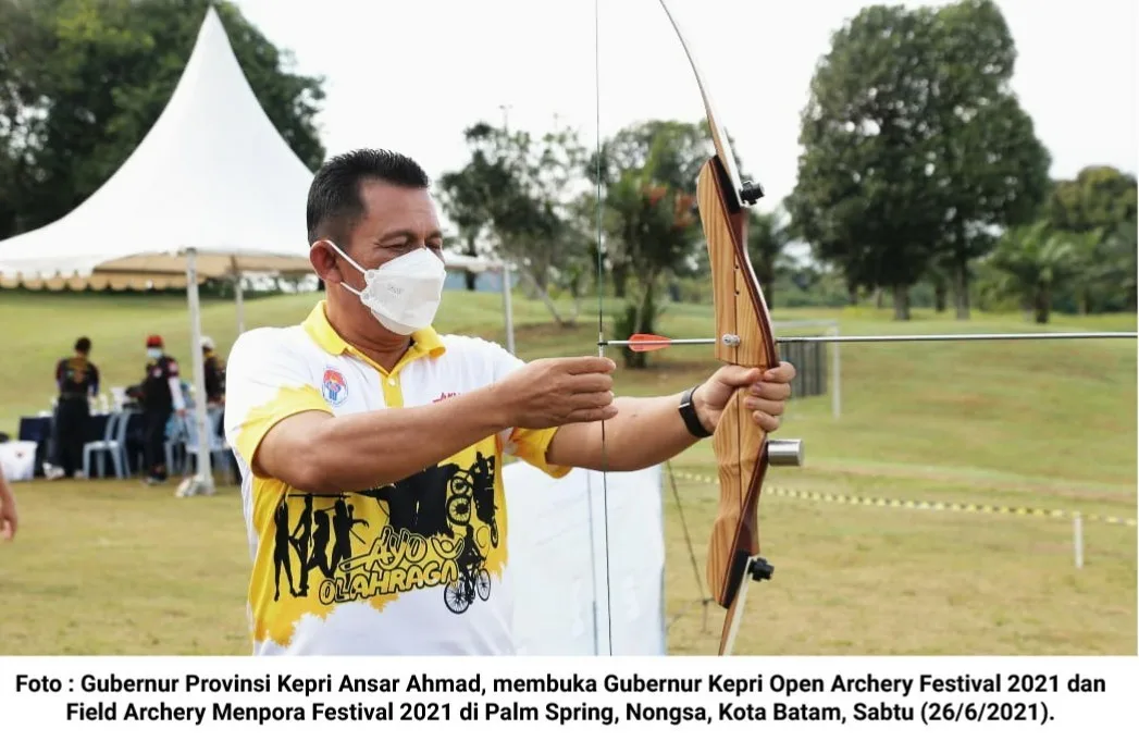 “Selamat datang di Kepri. Dengan berolahraga, keseimbangan tubuh kita akan terjaga, imun naik dan menjadi salah satu penangkal virus Covid-19,” kata Ansar, saat Pembukaan Gubernur Kepri Open Archery Festival 2021 dan Field Archery Menpora Festival 2021 di Palm Spring, Nongsa, Kota Batam, Sabtu (26/6/2021).