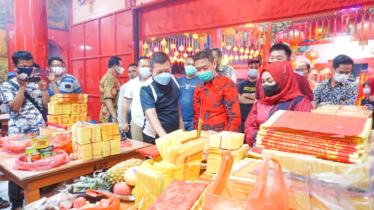 Dimana Sesampainya di kelenteng yang di sebut , bupati dengan penuh ramah menyapa sejumlah warga Tionghoa yang sedang melaksanakan sembahyang sekaligus melihat lihat keadaan ritual bakar tongkang dan meluangkan waktu untuk berbincang dengan pengurus kelenteng Chandra.