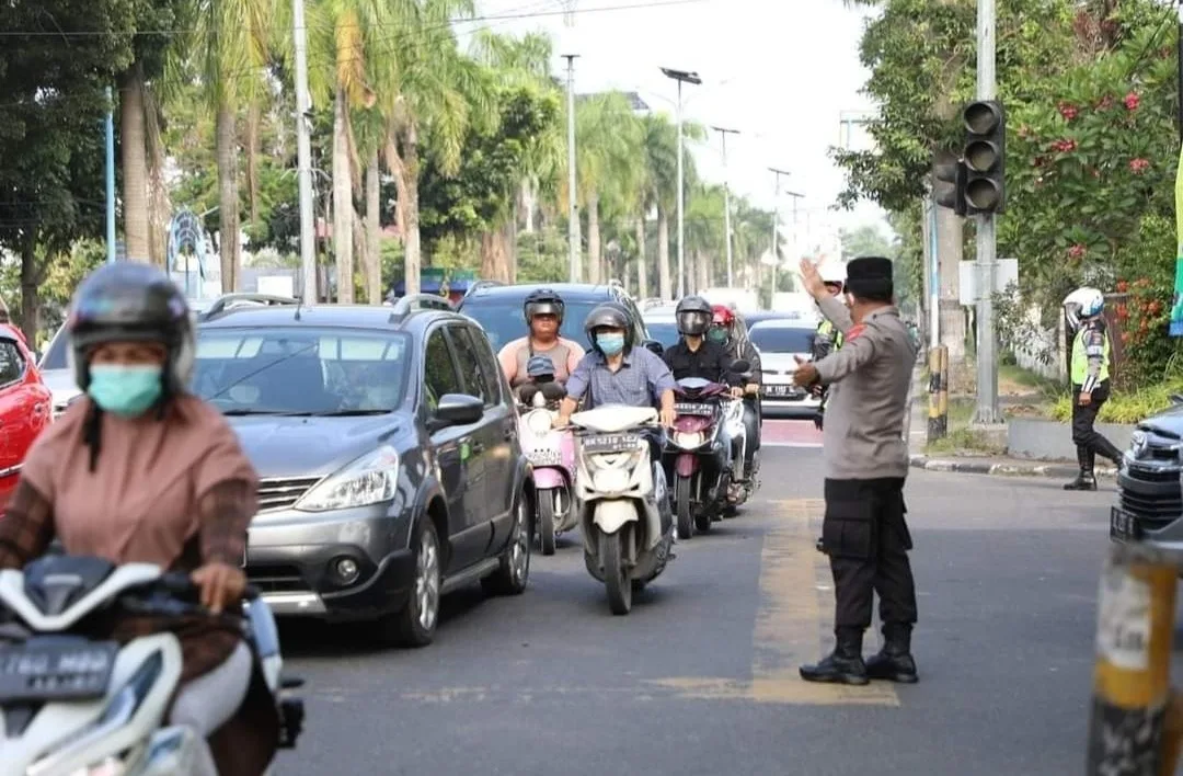 Kapolda Sumut terlihat mengatur arus lalulintas langsung di dampingi Dir Lantas Polda Sumut.